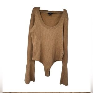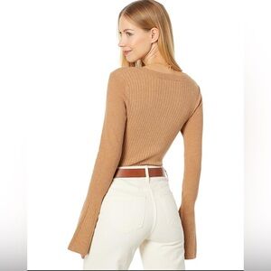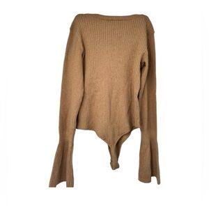 Paige Mimi Ribbed Sweater Bell sleeve Bodysuit in dark camel NWOT