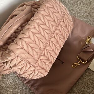 Comes with crossbody strap and extra furry pink bag charm I purchased