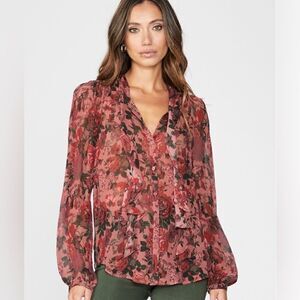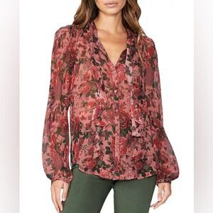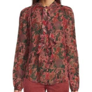 Paige NWT Elynne Silk Blouse in Burgundy Dust Multi Size M