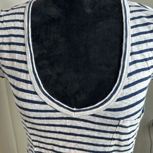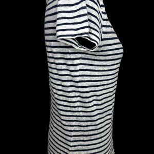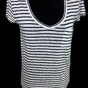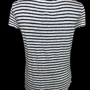 Paige Navy and White Striped V Neck 100% Linen Tee Size XS