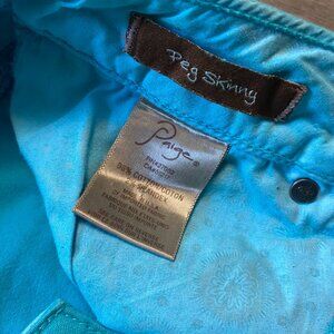 Paige Peg Skinny Bright Blue Denim Jeans Size 30