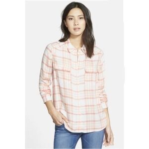 Paige Pink Coral Plaid Trudy long sleeve Button Down Shirt size small