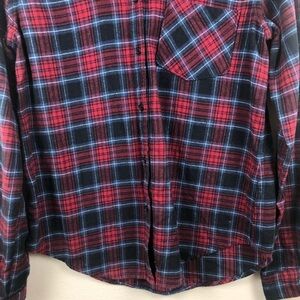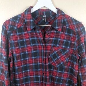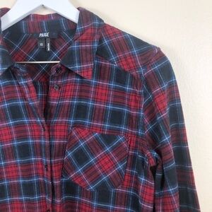 Paige Plaid Flannel Button Up Shirt Red Blue