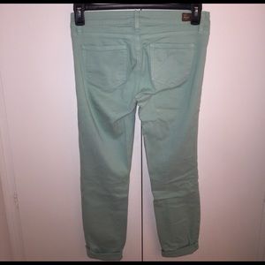 I got these jeans from Free People and only wore them twice and washed them once. They've been folded in my closet and are very comfortable. They are 98% cotton / 2% Spandex. Color is as pictured. Stretchy, yet comfortable. I'm moving cross country and am condensing my vast array of clothing.