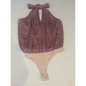 Paige Presa Halter Bodysuit Aurora Pink Shimmery Halter With Keyhole Cutout