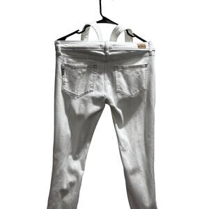Paige Revolve Sierra Distressed Deconstructed Crop White Denim Overalls Sz 24