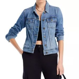 - Elevate every outfit with this sleek Paige Rowan jean jacket in chic Stark—a modern, versatile layer crafted with precision and personality.