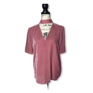 Paige Womens Cateline Pink Velvet Double V Choker Top Blouse S BHFO 9721