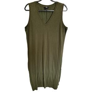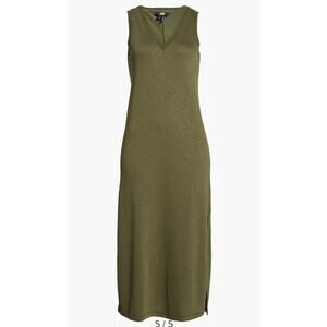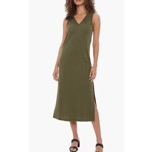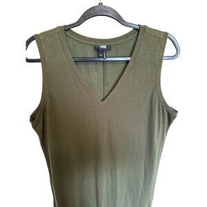 Paige Sage Dress Sleeveless Knit Tank V Neck Side Slit Midi Olive Green Size XL