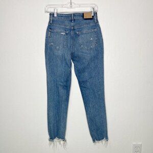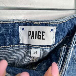 Paige Sarah Slim Cancun Destroyed Hem High Rise Jeans Size 24 light wash