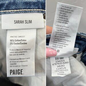Paige Sarah Slim Cancun Destroyed Hem High Rise Jeans Size 24