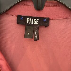 Paige Sevynne Surplice V Neck Shirt Bodysuit Silky Satin Long Sleeves Top L $179