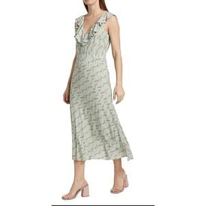 Paige Shona Floral Ruffled Midi-Dress In Green. Size 6. New without tag. Purchased at Nordstrom.