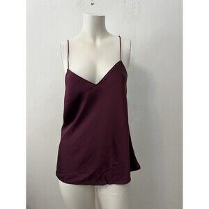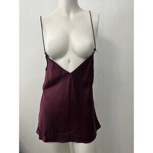 Paige Silk V-Neck Camisole Tank Top Dark Currant Size Small Adjustable Straps