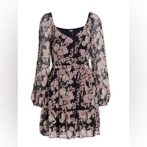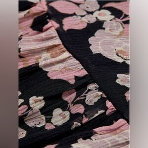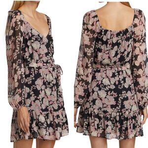 Paige Simi Mini Black Dress Floral Blouse Wrap Size L