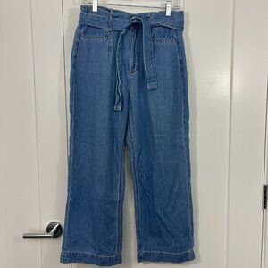 Paige Size 30 Blue Nellie High Waist Belted Wide Leg Crop Jeans