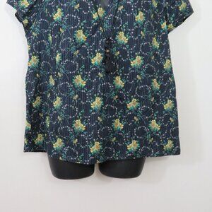 Paige Size Large Laramie Floral Blouse Top Smocked Split Neck Short Sleeve
