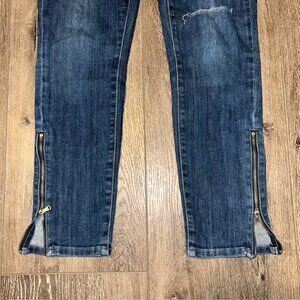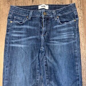 Paige Skinny Blue Jeans Dark Wash Cotton Blend Preppy Distressed Size 27