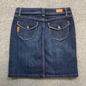 PAIGE SKIRT WOMENS 25 DENIM PICO ROUND FLAP BACK POCKETS STRAIGHT STRETCH JEAN