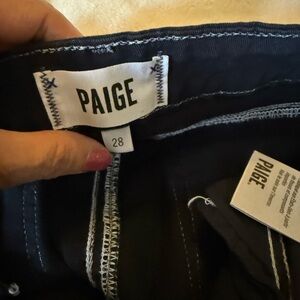 Paige Skyline Ankle Peg Jeans – Black w/ Optic White Stitching – Size 28