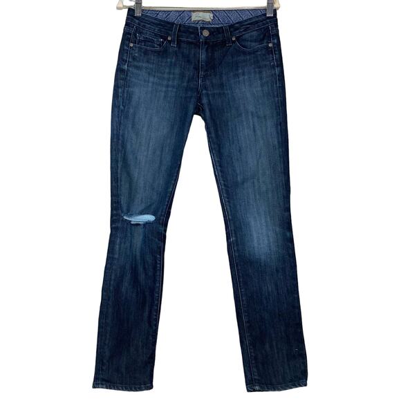 Paige Skyline Ankle Peg Skinny Jeans Ripped Knee Distressed Low Rise Dark Sz 28