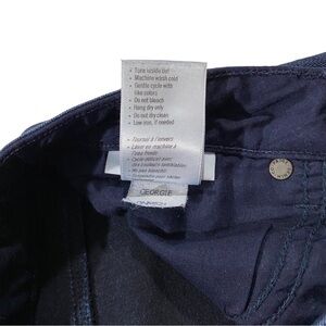 Paige Skyline Skinny in Georgie Wash Made in the USA Women’s Dark Wash Whiskered Denim Mid-Rise (8.5”) Skinny Leg Blue Jeans Sz 28 with an Inseam of 27. These jeans are preowned and in good condition.
