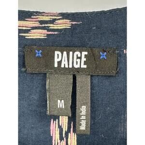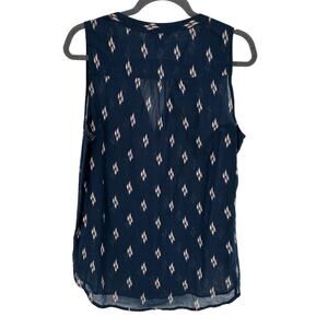 Paige Sleeveless Blouse Button Blue Diamond Print V-Neck Bohemian Summer Vacay M
