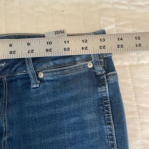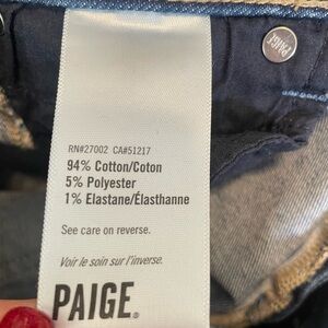 Paige Slim Straight Blue Jeans Women’s 26 Raw Split Hem Ankle High Rise Stretch