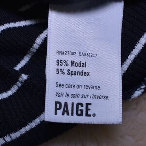 Elevate your wardrobe with this chic Paige Sparrow Sleeveless Striped Bodysuit, designed with a flattering tie-neck detail and modern black-and-white stripes. Made from a soft modal-spandex blend, this bodysuit is lightweight, stretchy, and comfortable for all-day wear. The thong-style bottom ensures a smooth, seamless look under skirts, pants, or denim. Perfect for layering, workwear, or casual chic outfits.