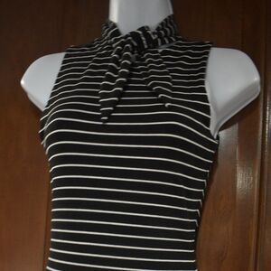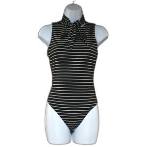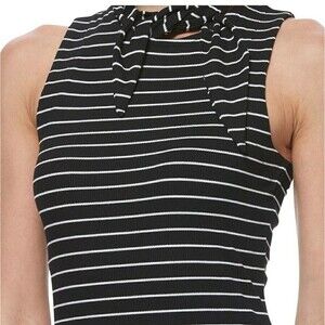 Paige Sparrow Striped Sleeveless Tie Neck Bodysuit Size XS Black White