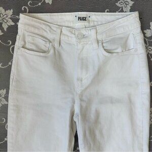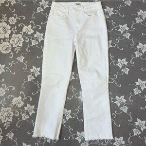 Paige The Cindy Crop High Rise Straight Leg Jean Raw Hem in White Sz 27