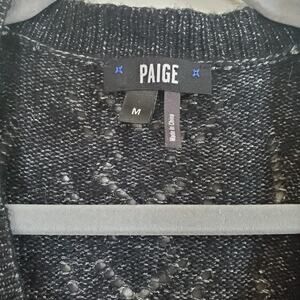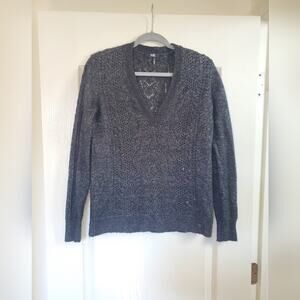 Paige V-Neck Wool Blend Black Shiny Silver Lightweight Sweater, Women's Medium