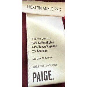Paige Velvet Hoxton Ankle Peg Burgundy Skinny Jeans Size 30 (Waist) Button Fly