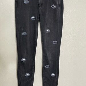 Paige Verdugo Ankle Black Frayed Lip Embroidered Jeans 27