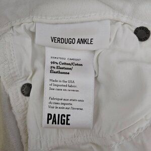 Paige Verdugo Ankle Denim Cotton Stretch White Jean Pants Size 26
