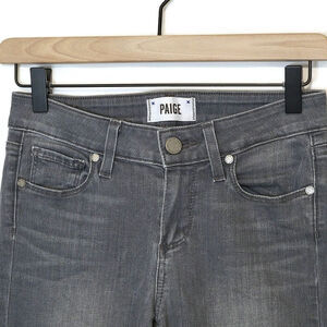 Paige Verdugo Ankle Gray Denim Skinny Jean Mid Rise Distressed Knee Zipper Ankle