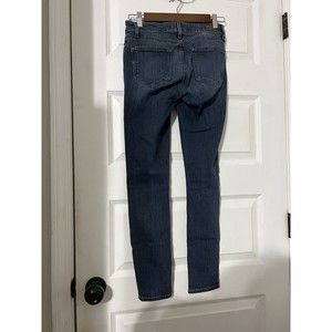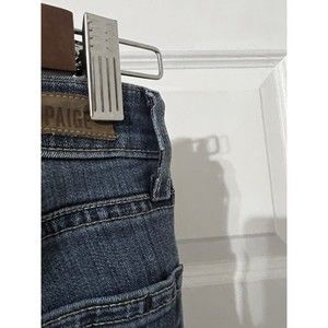 Paige Verdugo Ankle Jeans Women Size 27 Dark Wash Made in the USA. Has stretching between the legs around the crotch area also has stretching around the buttock area. The buttock area has signs of wear and fading. Belt loops are also deteriorating/signs of wear.