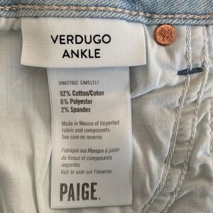 Paige Verdugo Ankle Jeans slim skinny fit light wash. Size 27. Traditional 5 pocket style. Moderate stretch for fit and comfort.