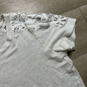 Paige White Linen Blend Short Sleeve Scoop Neck Shirt Crotchet Lace Shoulders
