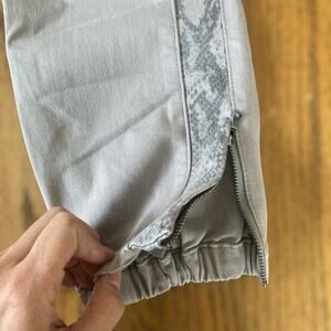 Paige Women’s Mayslie Jogger Slithering Grey Zip Hem Stretch Pants Size 26. Python/snake/animal print side stripe. New with tags, no flaws.