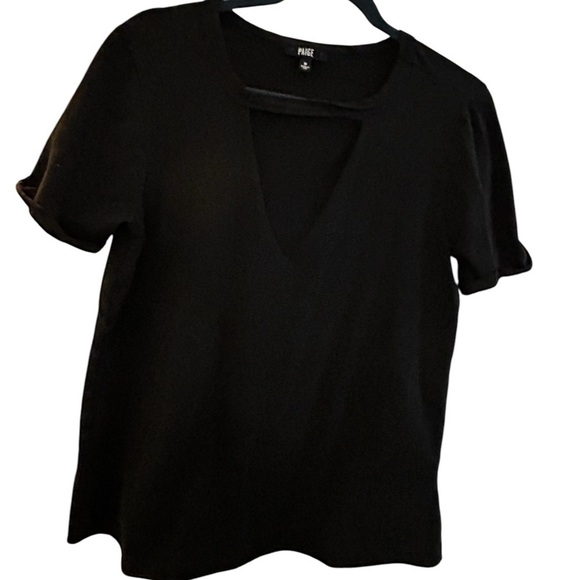 Elevate your wardrobe with this chic black V-neck top from Paige. Perfect for any occasion, this versatile piece offers both style and comfort.