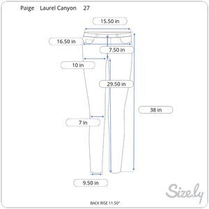 Paige Jeans Tag size 28 BUT the flat lay measurement is 15.50" so true waist size is 31 inches