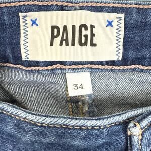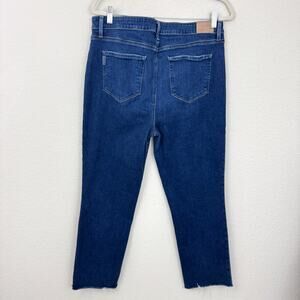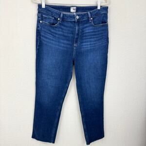 Paige Womens Cindy Denim Jeans Size 34 High Rise Straight Raw Hem Devoted Blue
