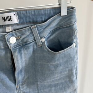 Paige Women’s Cropped Slightly Flared (distressed bottom) Stretch Jeans / size 28