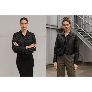 This black cropped denim jacket by Paige offers a sophisticated yet edgy look for modern women. Made from 100% cotton, it's comfortable and stylish.