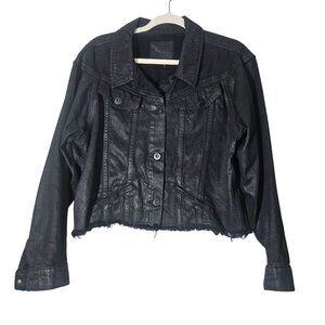 Paige Women’s Cotton Moto Jacket Black L Raw Hem Cropped Utility Street Style