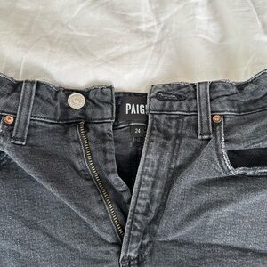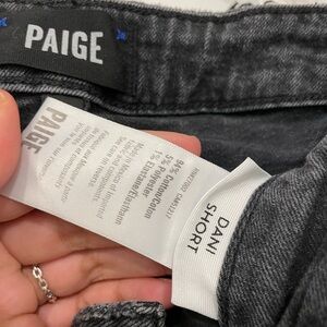 • Description: The Paige Dani Cut Off Shorts are a must-have — perfectly distressed with a flattering fit and a classic black wash made for endless styling. These are darker wash just has to turn the exposure up so you can see details of the shorts.