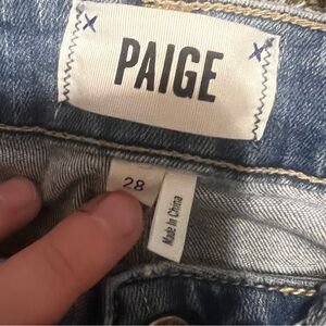 Paige Women's High Rise Lou Lou Flare Jeans Silver Piping Out-seam Slit