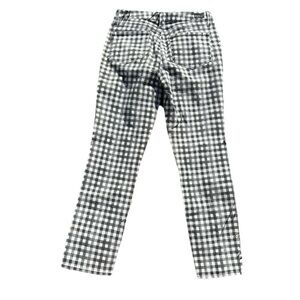 Split ankle checkered print adds flair to these chic straight jeans. Zip fly with button closure. 5 pocket styling. Checkered print. Straight leg. 98% cotton, 2% elastane. Black and white checkerboard checkered gingham check print. Size 30. Approximate measurements lying flat are 15” waist, 10 1/2” rise, and 28 inseam. In great preowned condition with no flaws.