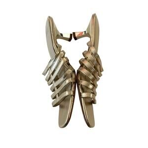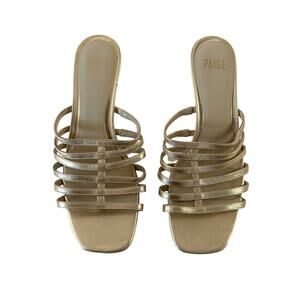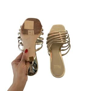 Paige Women’s Metallic Gold Strappy Slip On Formal Kitten Heels Size 10